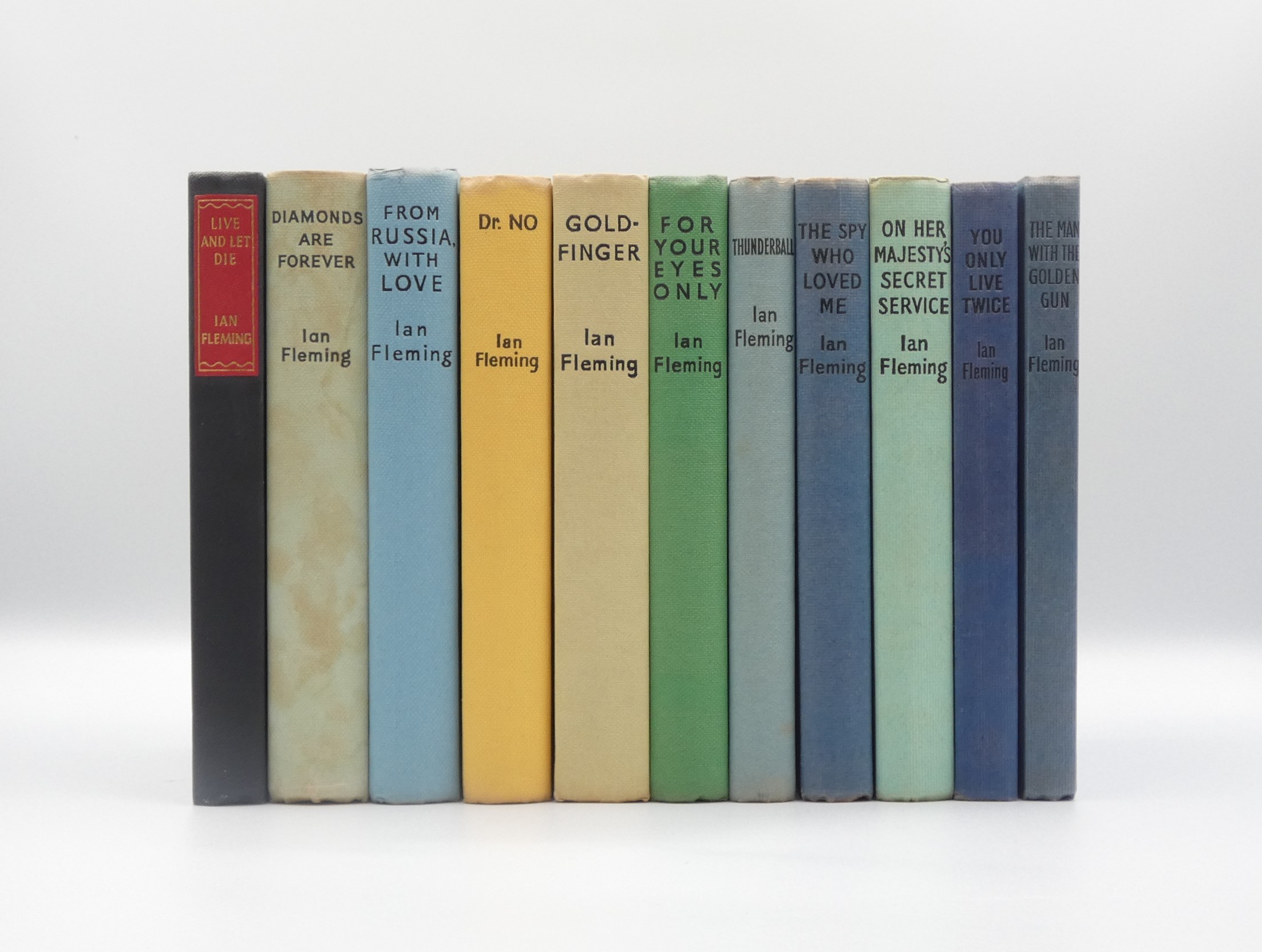 A complete set of UK Book Club / Ian Fleming’s James Bond Novels. Comprising of – Live and Let Die – Diamonds Are Forever – From Russia With Love – Dr No – Goldfinger – For Your Eyes Only – Thunderball – The Spy Who loved Me – On Her Majesty’s Secret Service – You Only Live Twice – The Man with the Golden Gun Ian Fleming