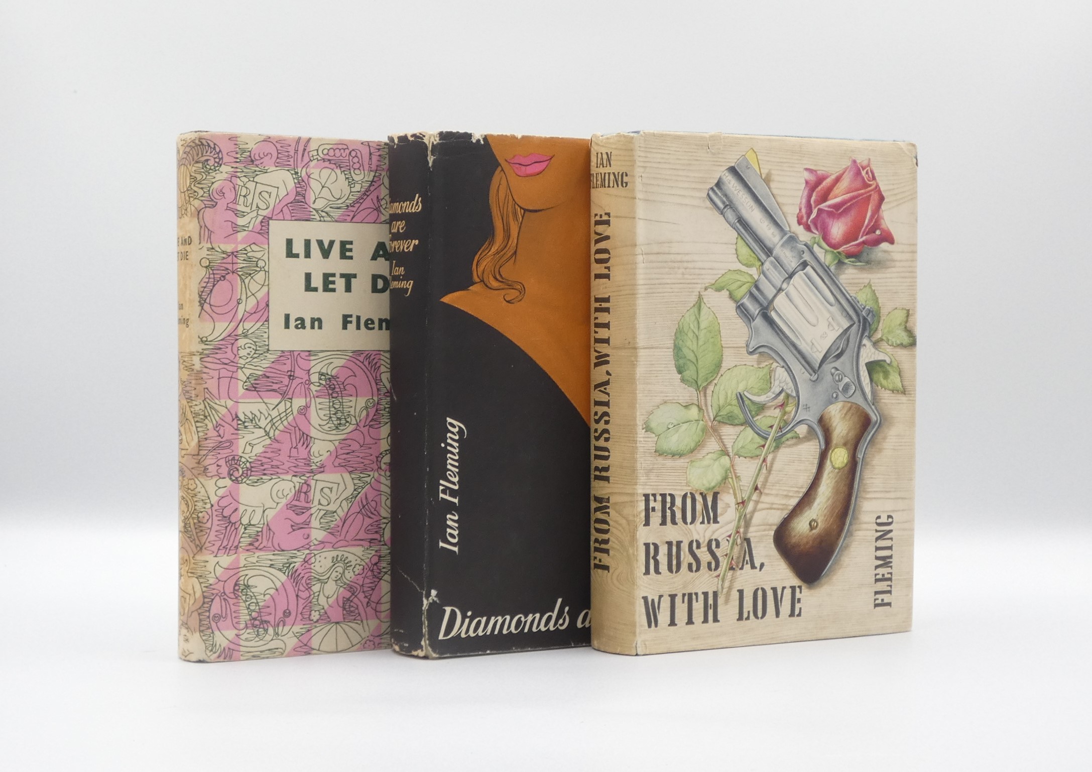 Hardcover. Condition: Very Good. Dust Jacket Condition: Very Good. Book Club Edition. HARDBACKS – 1956 – 1966 – Live and Let Die, Reprint Society – A very good book in a very good dust wrapper with toning to the spine. Diamonds Are Forever – A near very good book with some water marks to the base of the panels and spine, in a very good d/w with shallow chipping to the spine tips. From Russia With Love – A very good or better book in a very good or better d/w. Dr No – A very good book in a very good d/w with shallow chipping to the spine tips. Goldfinger – A very good book in a very good d/w with shallow chipping to the spine tips. For Your Eyes Only – A very good book in a very good d/w with shallow chipping to the spine tips. Thunderball – A very good book in a very good dust wrapper with some light toning to the spine. The Spy Who Loved Me – A very good book in a very good d/w with shallow chipping to the spine tips, also with light toning to the spine. OHMSS – A very good book in a very good d/w with shallow chipping to the spine tips, also with light soiling to the rear panel. You Only Live Twice – A very good book in a very good d/w with light soiling to the rear panel. The Man with the Golden Gun – A very good book in a very good dust wrapper with some light toning to the spine. A nice set of original book club titles in their original dust wrappers. All these books are in a nice, collectable condition with no previous owner names or inscriptions in any of the titles. An affordable option to obtain these classic 1960’s titles without having to take out a second mortgage! Due to the weight of these books, please obtain a postage quote. We only charge postage at cost.