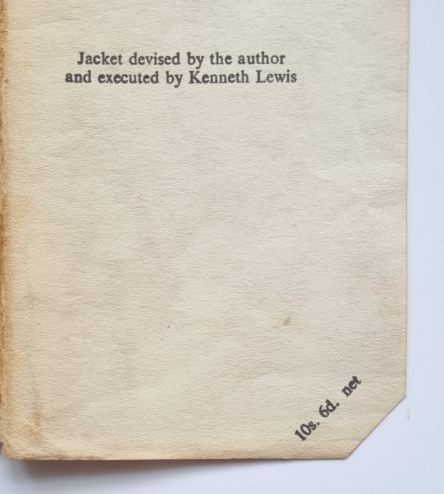 DUST WRAPPER ONLY – A near very good dust wrapper with chipping to the spine tips, also with chipping to the corners of the front and rear flap folds, more so to the upper corner of the front flap. The usual fading to the spine, with soiling to the rear panel. A correct Uk first edition dust wrapper with the publisher’s printed price of 10s.6d.net present to both the front and rear flaps.
