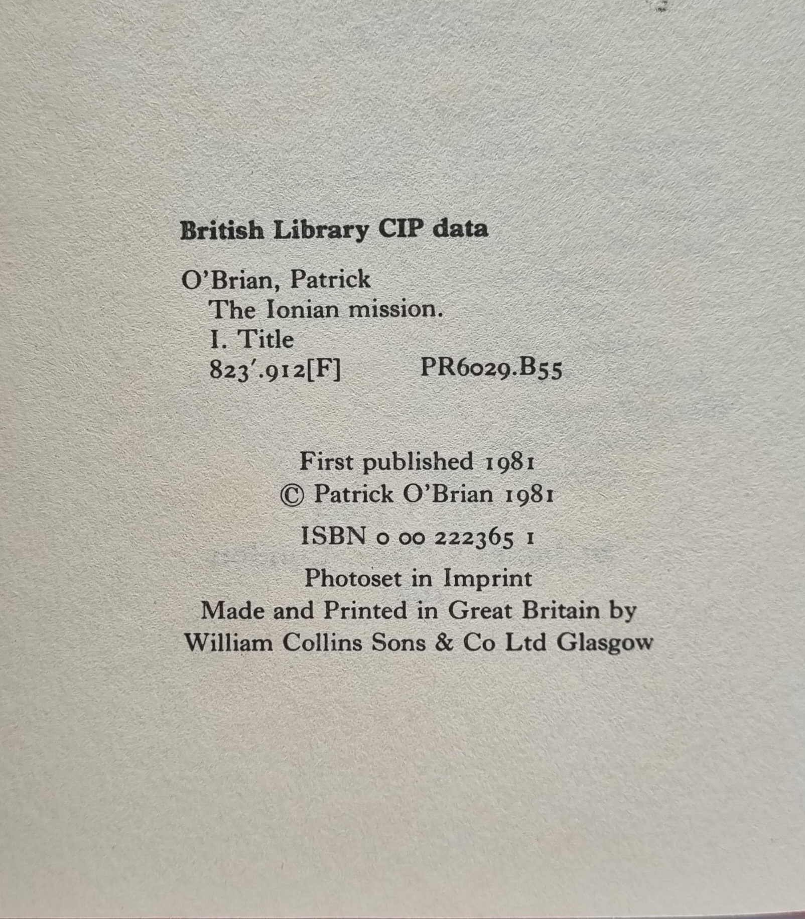 The Ionian Mission – SIGNED BY THE AUTHOR BY WAY OF A TIPPED IN LABEL – Patrick O’Brian