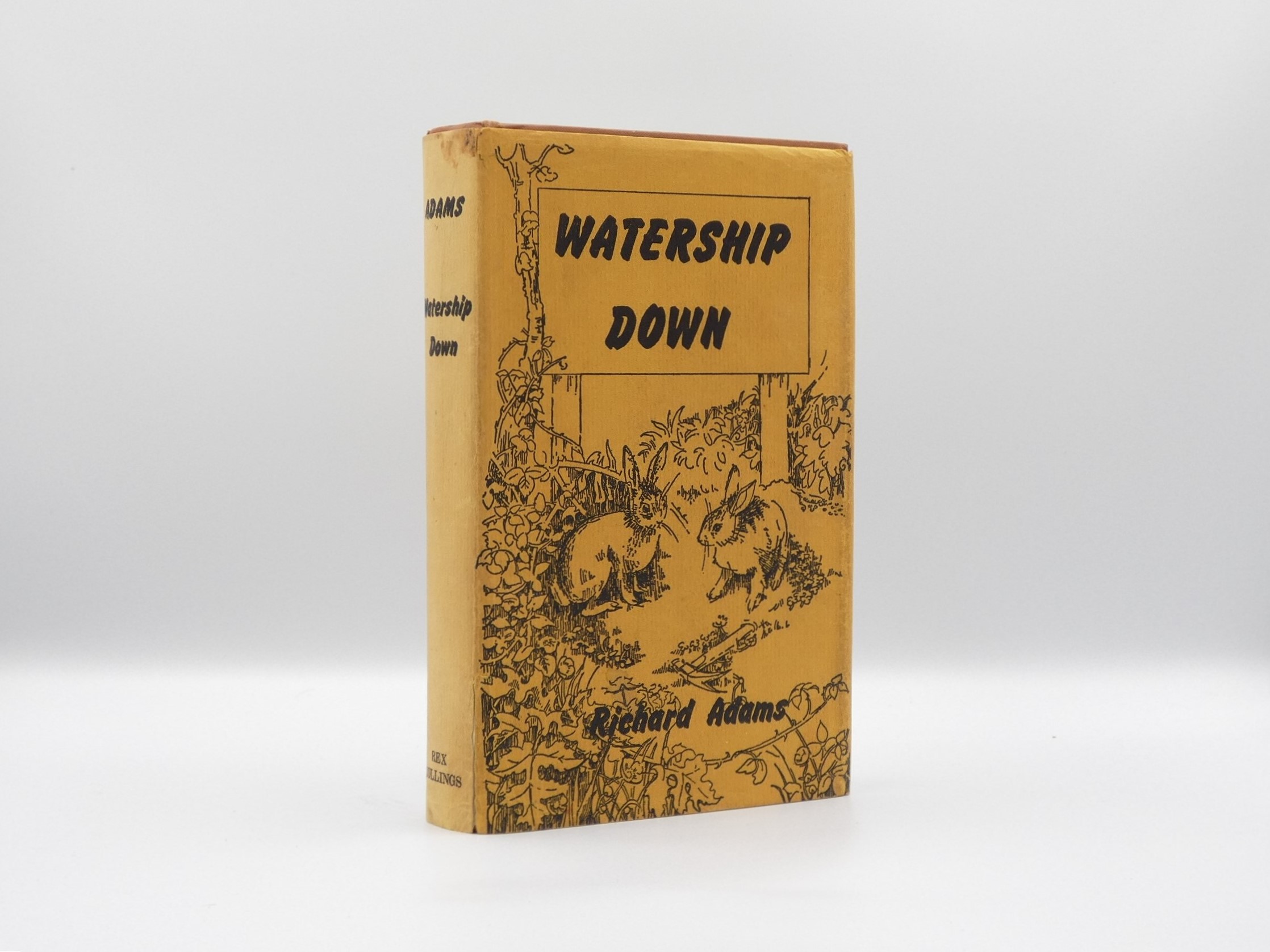 HARDBACK – A very good book, bound in the publisher’s brown cloth boards with bright gilt lettering present to the spine. The boards are clean, but there is a little spotting to the corner of the spine and front panel. Internally, the pages are clean but there is some foxing to the page block, also with a couple of faint spots to the first two or three pages. The book is free of any previous owner names or inscriptions. Signed and inscribed by the author one year after publication, the inscription reads – TO RUFUS AND PANDORA / VAUGHAN / WITH BEST WISHES FROM / RICHARD ADAMS / AUGUST 1973.  The dust wrapper is in very good condition with two closed tears to the base of the spine with a smaller closed tear to the spine tip. There is a small area of faint red staining to the corner of the rear panel with a small patch of soiling to the spine tip. Lightly faded to the spine. There is a small strip of archival tape to the verso of the dust wrapper where the corner of the bottom flap fold is present. The publisher’s printed price of £3.50.net is present to the front flap.
